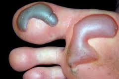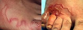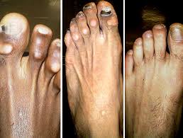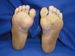 Devido a estes males e a outros tantos não mencionados, os pés sofrem de: flebites, varizes, câimbras, hipotermia, reumatismos, ulcerações e pela dificuldade de higienização comumente são afetados por fungos que atacam as unhas e pele principalmente entre os dedos, dando abertura para entrada de bactérias ocorrendo como exemplo a erisipela.