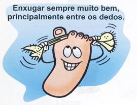 a) Quando lavar os pés, enxugue bem entre os dedos, evitando as frieiras que são portas de entrada para as bactérias.