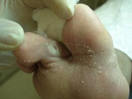 As consequências mais comuns são a perda de sensibilidade e o surgimento de manchas acrômicas (esbranquiçadas). "A grande preocupação em se tratando de pé não são as manchas, mas sim, evitar ferimentos enquanto se está cuidando das unhas". " Por isso é recomendado uma visita regular ao podólogo".