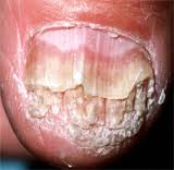 As unhas podem tornar-se espessas, quebradiças, curvadas, descoloradas, infeccionadas e irregulares. Em alguns casos a unha pode cair, e crescer uma nova unha.