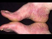 Devido a estes males e a outros tantos não mencionados, os pés sofrem de: flebites, varizes, câimbras, hipotermia, reumatismos, ulcerações e pela dificuldade de higienização comumente são afetados por fungos que atacam as unhas e pele principalmente entre os dedos, dando abertura para entrada de bactérias ocorrendo como exemplo a erisipela.